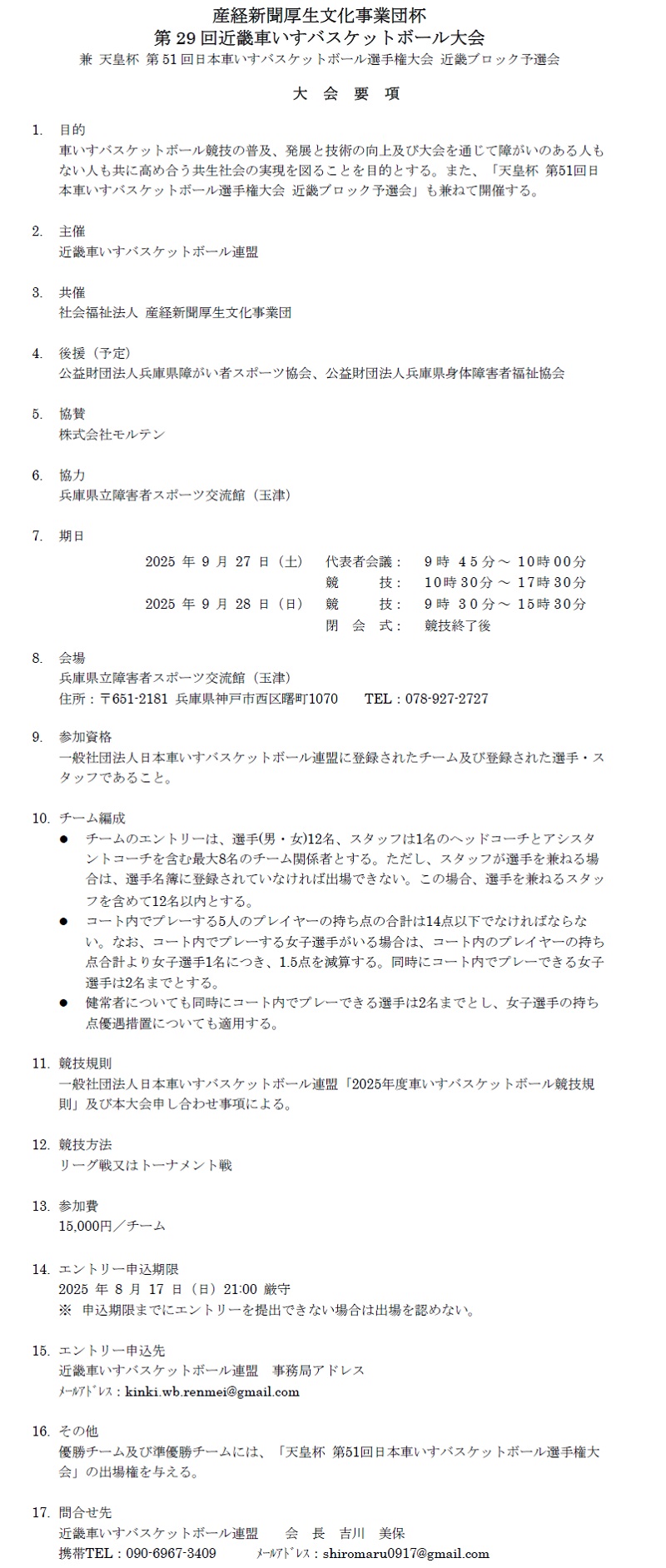 2025年09月27日(土)28日(日) 産経新聞厚生文化事業団杯 第29回近畿車いすバスケットボール大会 兼 天皇杯第51回日本車いすバスケットボール選手権大会 近畿ブロック予選会