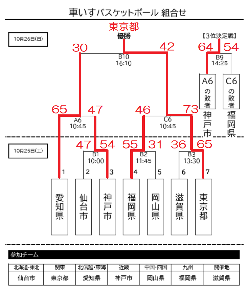 試合模様:第2日目 10/26 車いすバスケットボール Bコート